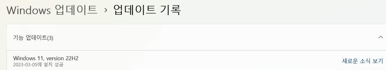 어느날 Window 11, version 22H2 로 자동 업데이트 되어 있었다.