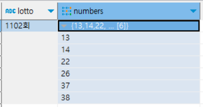 아래와 같이 numbers 컬럼에 리스트 형태로 저장할 수 있다.
