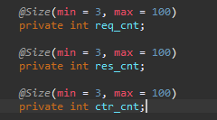 Post 요청 시 파라미터로 사용하지 않는 컬럼은 @Size 표시를 지워주고 나서 해결되었다.
