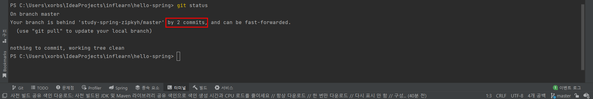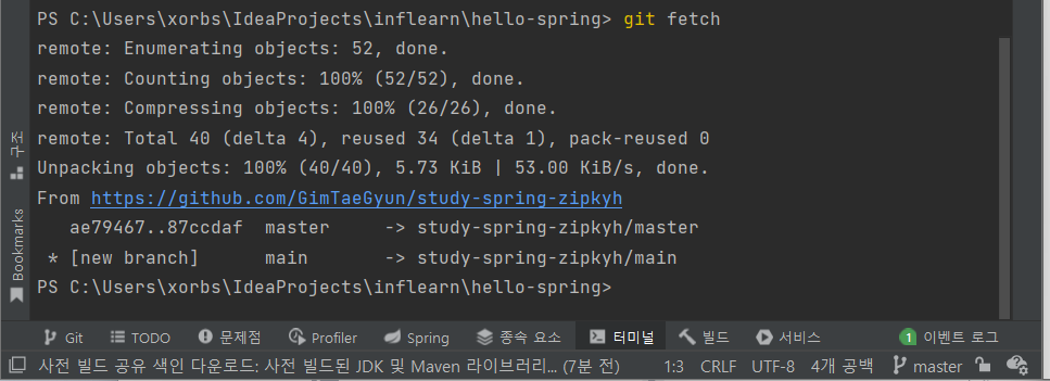 다른 곳에서 commit 한 내용을 로컬 PC에 저장하려고 한다.
