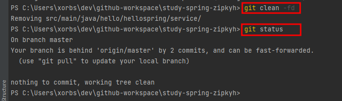 일단 삭제를 위해 git clean -fd를 하였다.