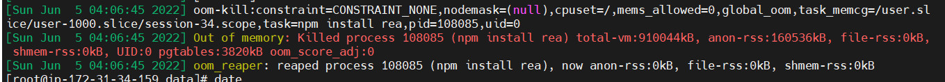 npm install rea 라고 적혀있는 것을 보니 npm install 할 때 에러가 발생한 것 같다.